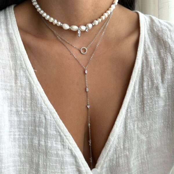 שרשרת עשוייה כסף אמיתי 925 משובצת זרקונים אורך השרשרת: 40+5 ס”מ