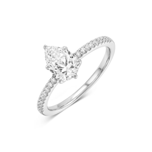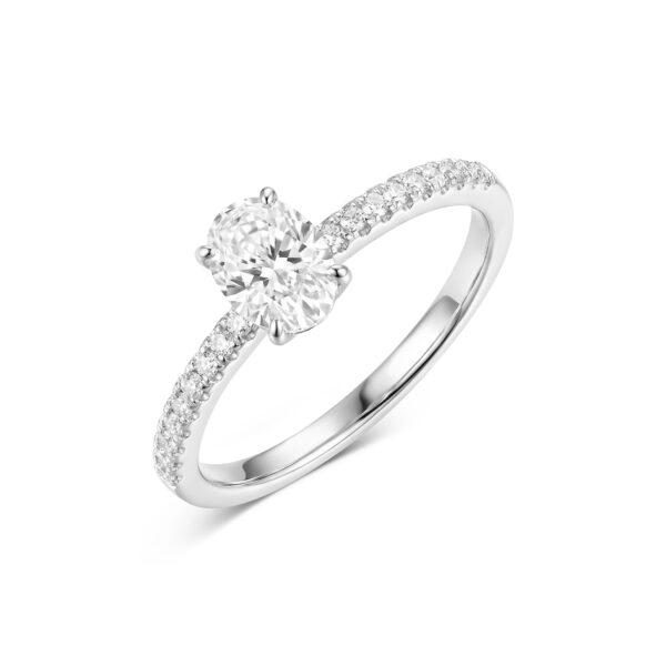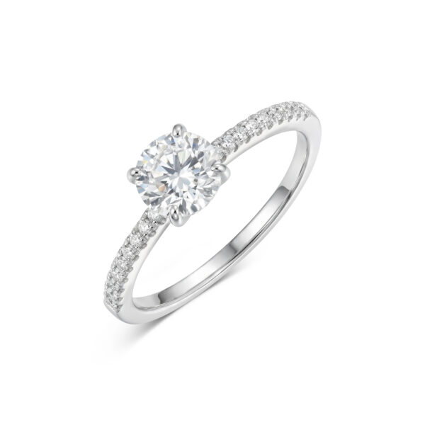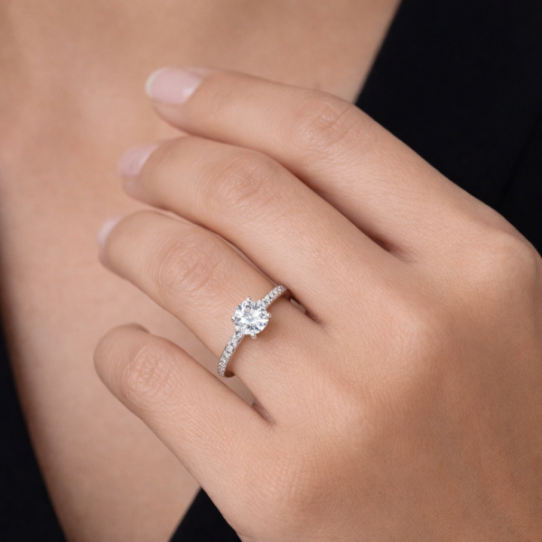 שיבוץ אבני צד לאורך הזרוע מעניק לטבעת נוכחות מרשימה מכל זווית, תוך שמירה על קו עדין וקלאסי.בחירה מושלמת כטבעת אירוסין, טבעת הצהרה או מתנה יוקרתית לאישה שאוהבת ברק אמיתי.