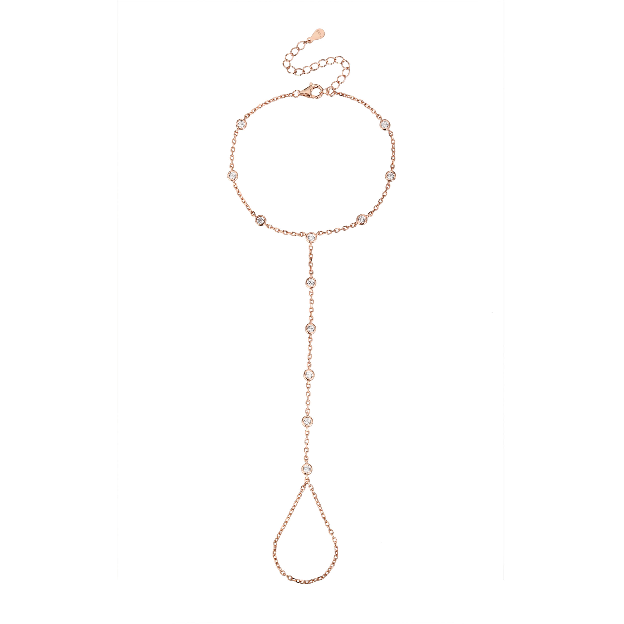 צמיד משולב טבעת עשוי כסף אמיתי 925 בציפוי זהב אדום (רוז גולד) משובץ אבני זרקון אורך 15+5 סמ