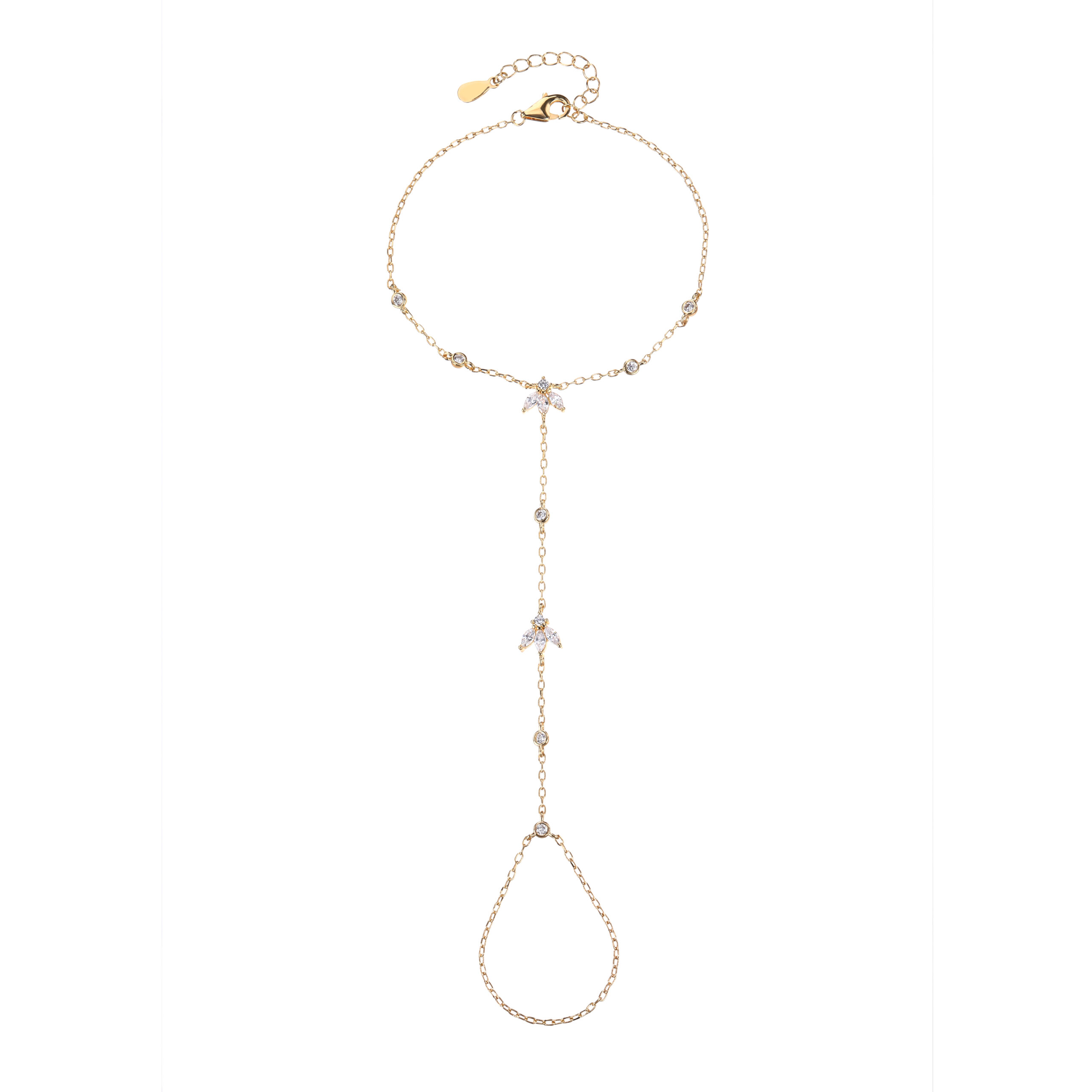 קנו עכשיוצמיד משולב טבעת עשוי פליז בציפוי זהב 14K בעובי 2 מיקרון משובץ אבני זרקון