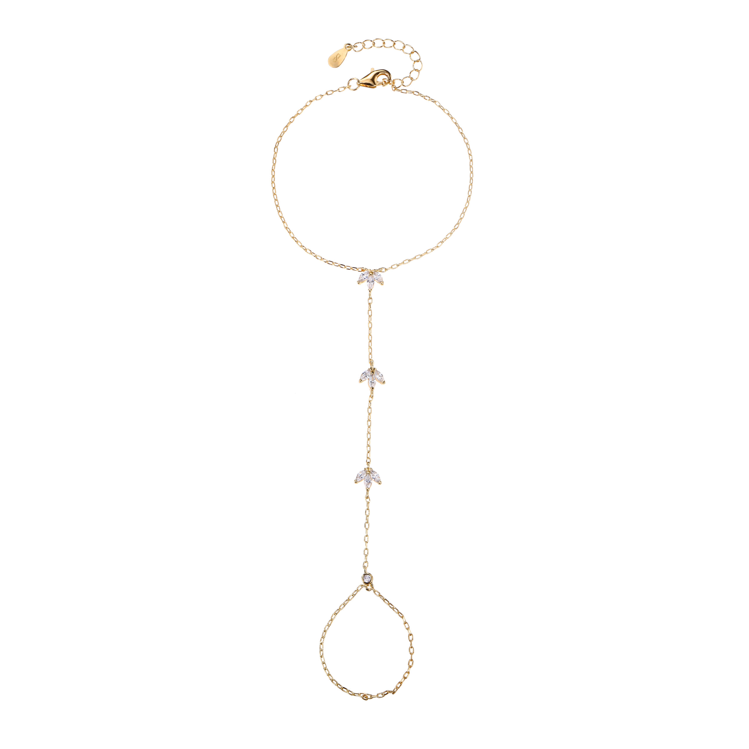 קנו עכשיוצמיד משולב טבעת עשוי פליז בציפוי זהב 14K בעובי 2 מיקרון משובץ אבני זרקון