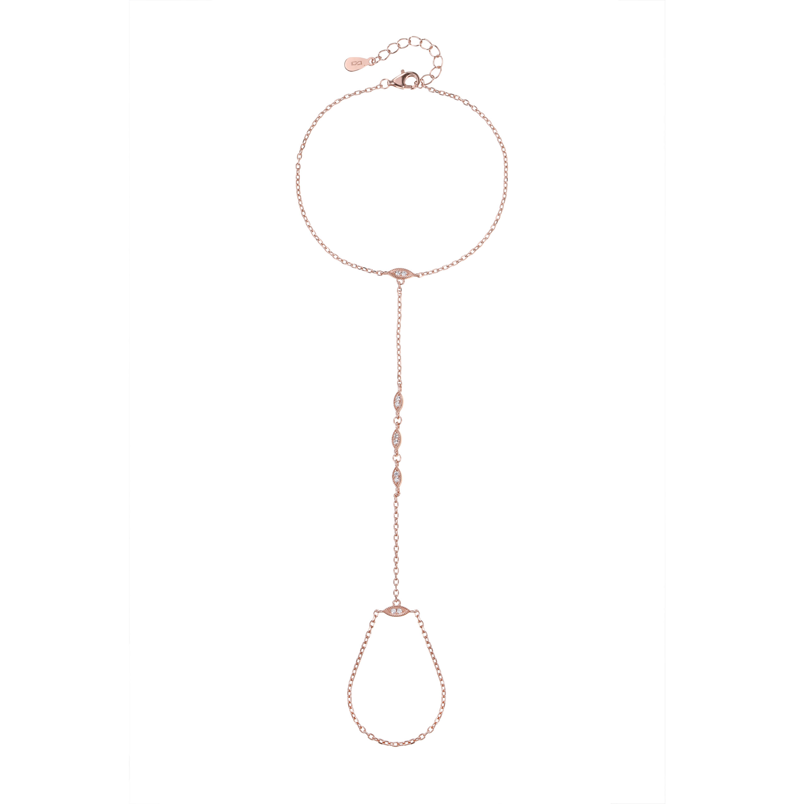 צמיד משולב טבעת עשוי כסף אמיתי 925 בציפוי זהב אדום (רוז גולד) משובץ אבני זרקון אורך 15+5 סמ