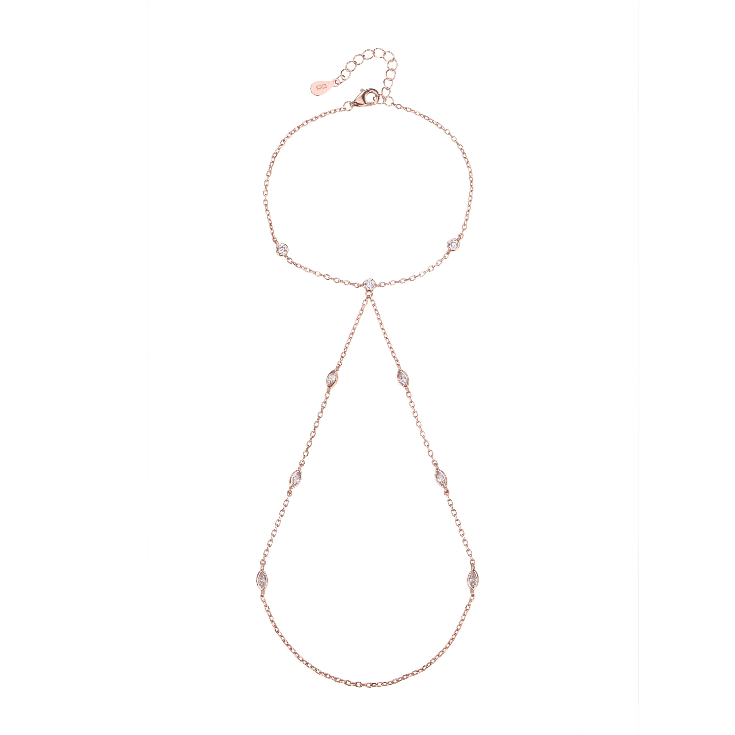 צמיד משולב טבעת עשוי כסף אמיתי 925 בציפוי זהב אדום (רוז גולד) משובץ אבני זרקון אורך 15+5 סמ