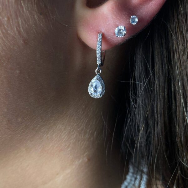 עגילי חישוק טיפה נופלת מכסף 925 משובצים באבני זרקון - יוקרה ואופנה מושלמים