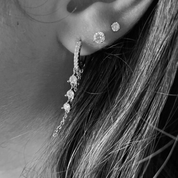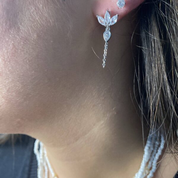 ברוכים הבאים לעולם היופי והסטייל, עם עגילי כסף טהור 925 המשדרים יוקרה ויופי. העגילים מעוטרים בשרשרת נופלת אופנתית ובשיבוץ זרקונים, יצירתיים ומדהימים במראהם.