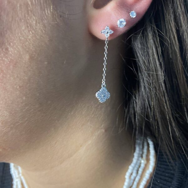 עגיל תלתן מכסף טהור 925 עם שיבוץ זרקונים - יופי של שני עולמות בעגיל אחד