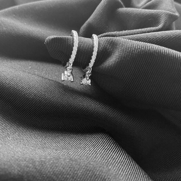 ברוכים הבאים לעולם היופי והסטייל, עם עגילי לונה מכסף טהור 925. העגילים מעוטרים בשיבוץ זרקונים נוצץ לאורך כל העגיל וזרקון יחיד הנופל, המספקים מראה מרהיב ומשדרים אופנה אלגנטית.
