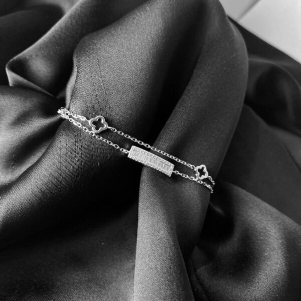 צמיד דאבל love כסף טהור בשיבוץ זרקונים בחיתוך לייזר מדהים למתנה !