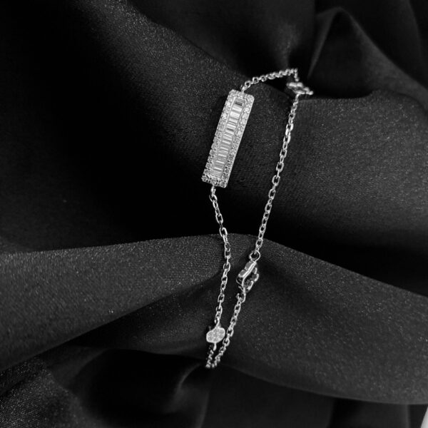 ברוכים הבאים לעולם היוקרה והסטייל, עם צמיד טניס משובץ זרקונים בחיתוך לייזר מכסף 925. עם ריבועים מנצנצים בקוטר 2.5 מ"מ, וסוגר חזק ואיכותי, זהו הצמיד שישדרג כל לוק באופן יומיומי.