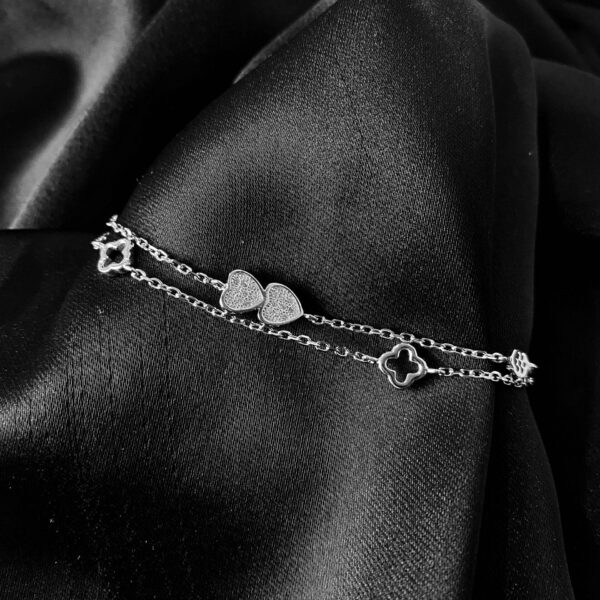 צמיד דאבל לבבות מכסף טהור 925 עם שיבוץ זרקונים - יפה כמו שני חלקים באחד