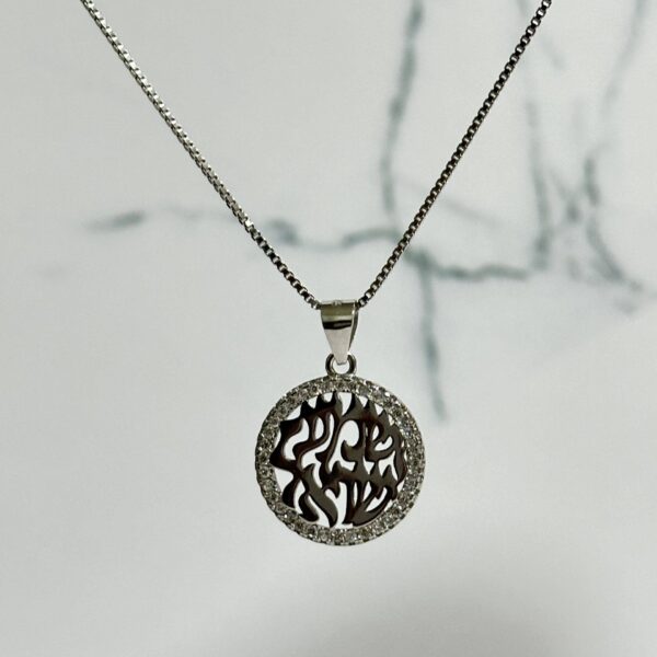 שרשרת "שמע ישראל" מכסף טהור 925 עם שיבוץ זרקונים - לשמירה פרטית בסטייל